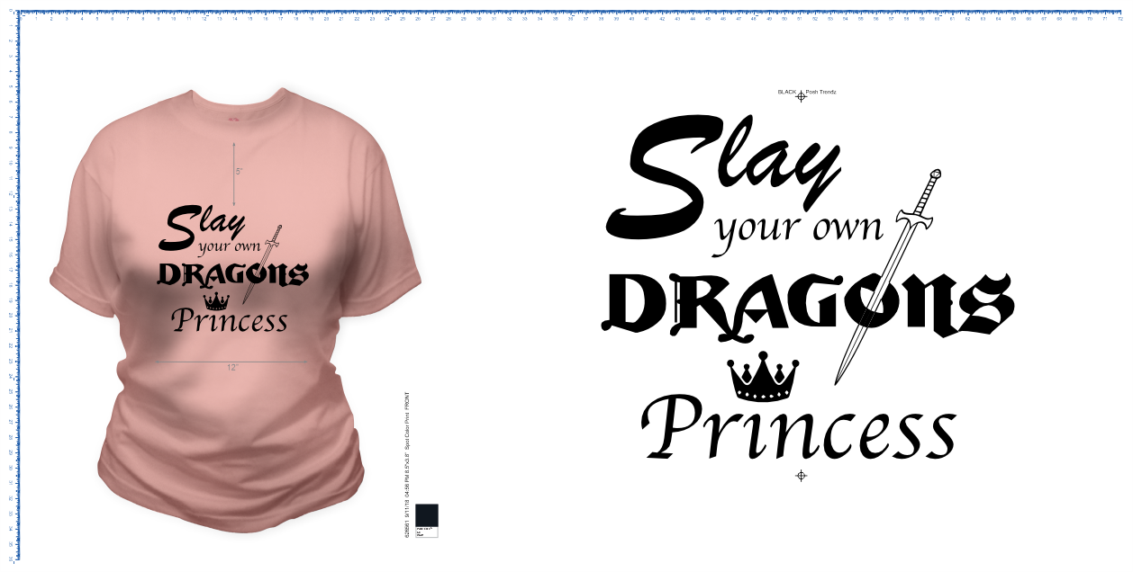 - Print Size: 12"w Front