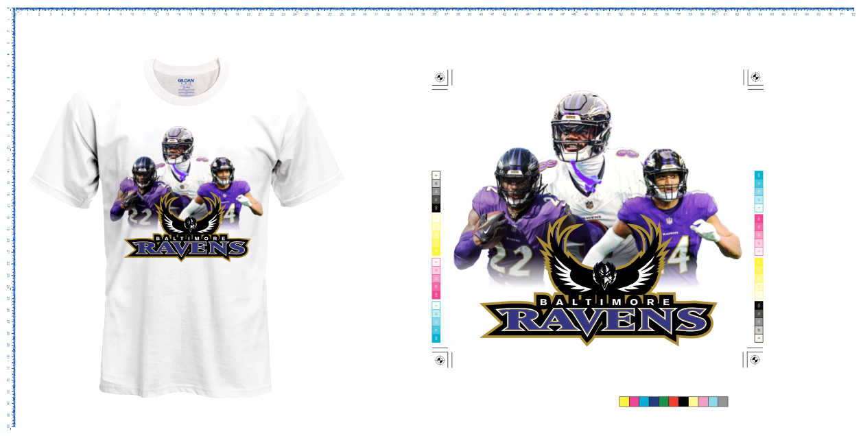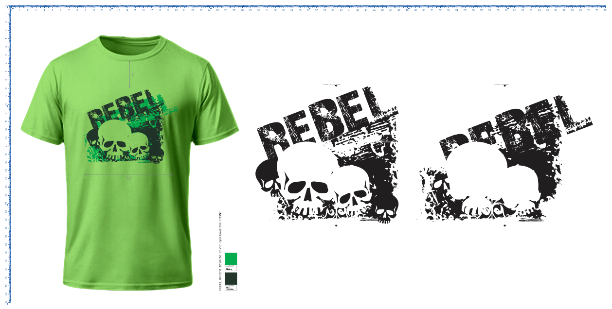 - Print Size: 13"w Front