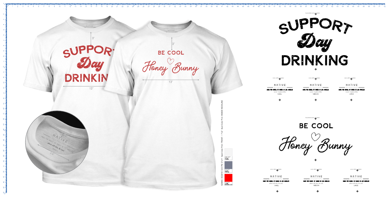 - Print Size: 11"w Front / 2"w Inside Neckline