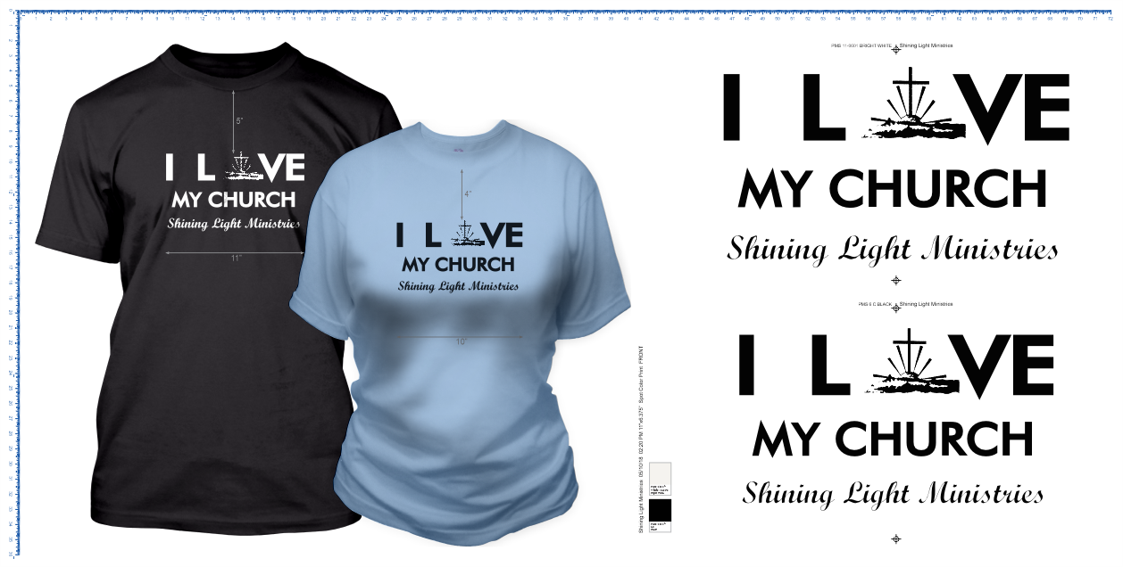 - Print Size: 11"w Front / 4"w Left Sleeve