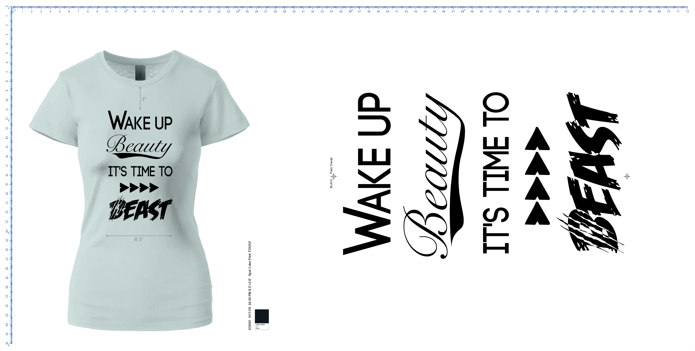 - Print Size: 11"w Front